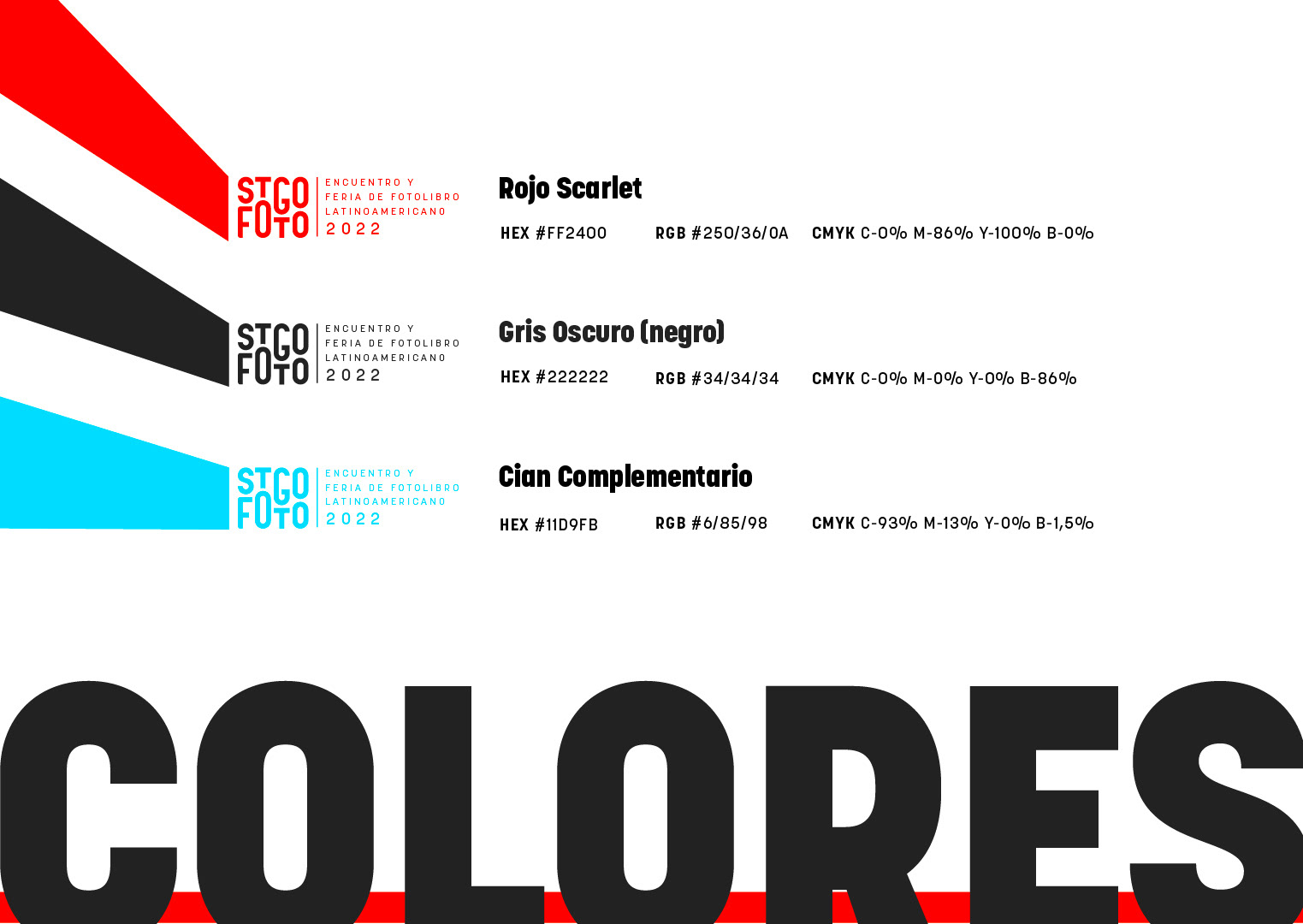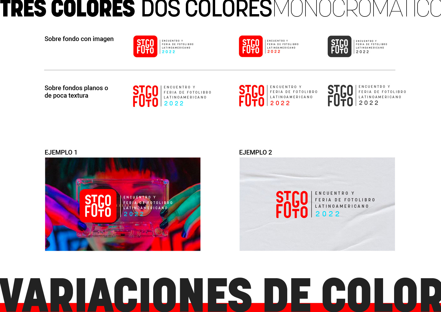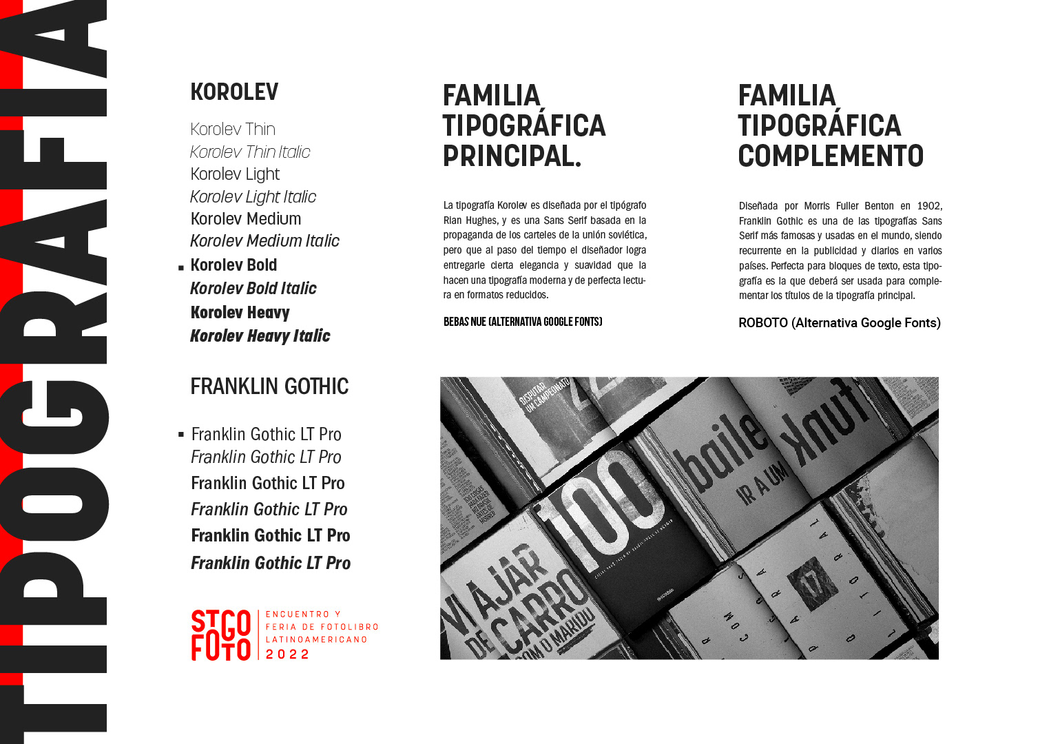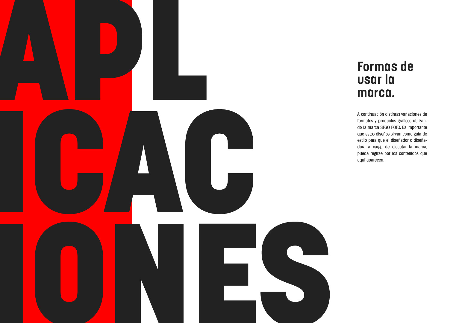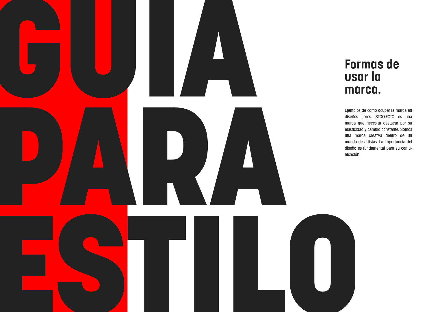 This is the brand manual I provided alongside the STGOFOTO logo, a Latin American photobook fair. Within this document are all the graphic guidelines that the brand relies on when conveying its message to future designers.