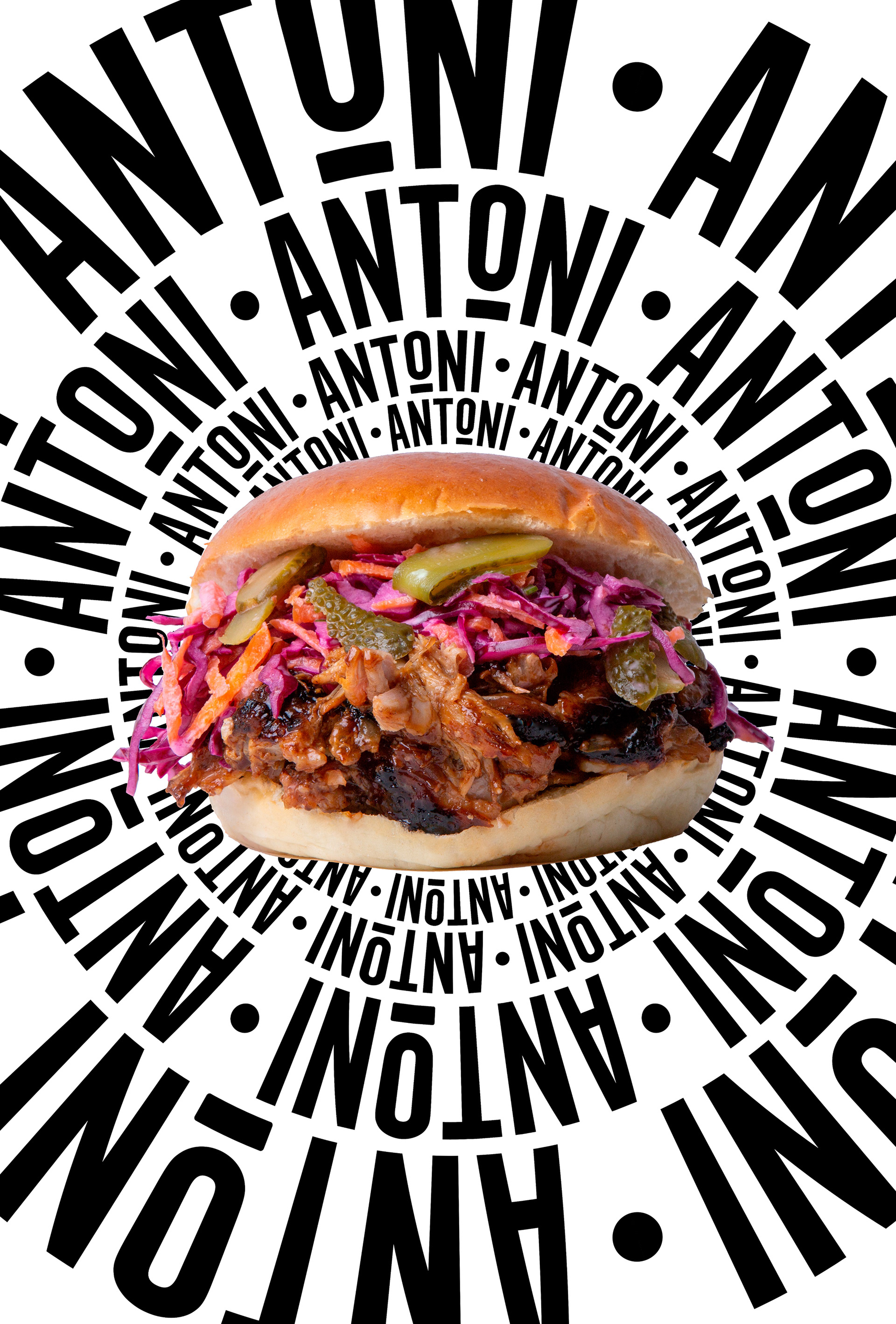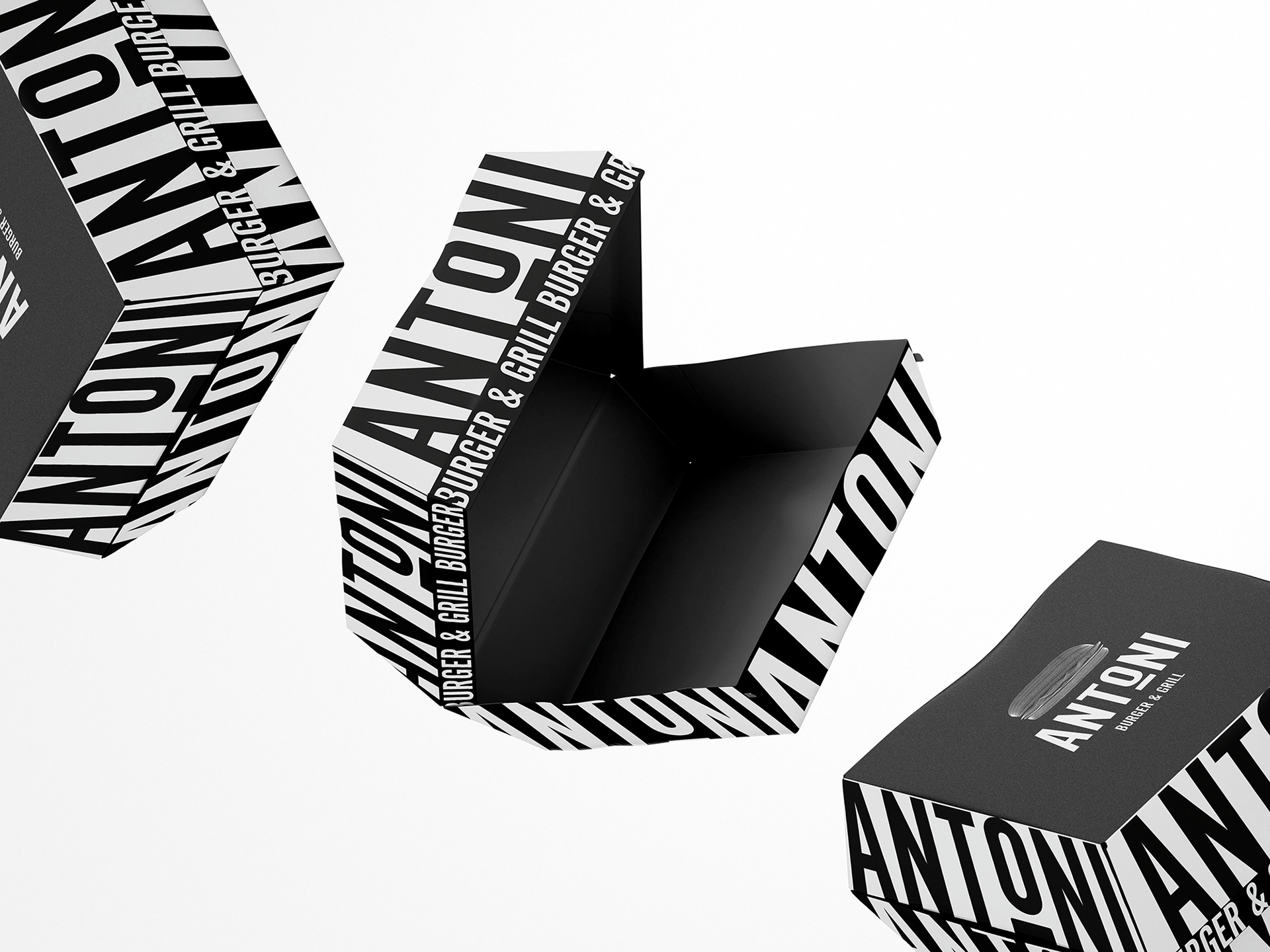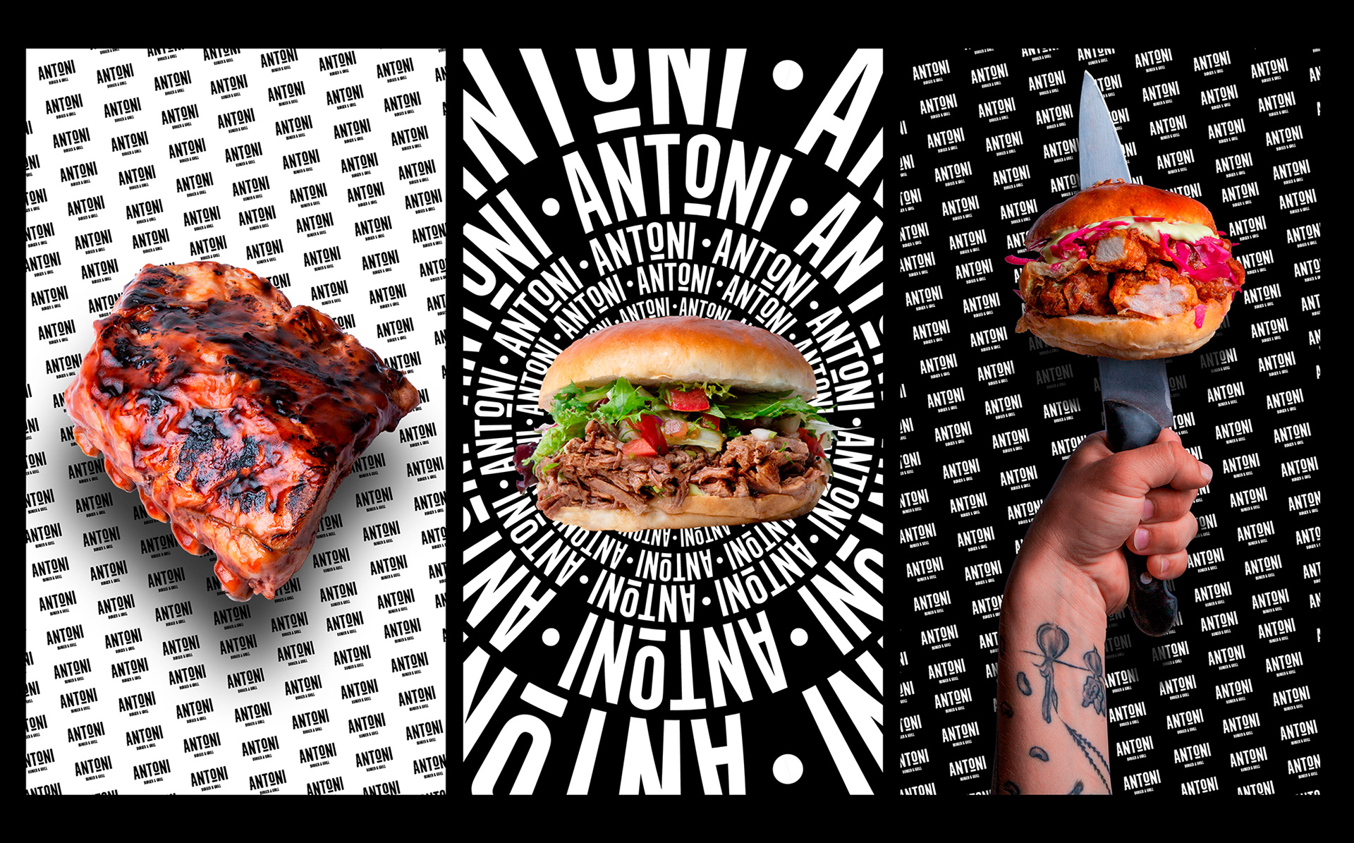 Branding design for a Madrid-inspired grill and burger joint named 'Antoni'