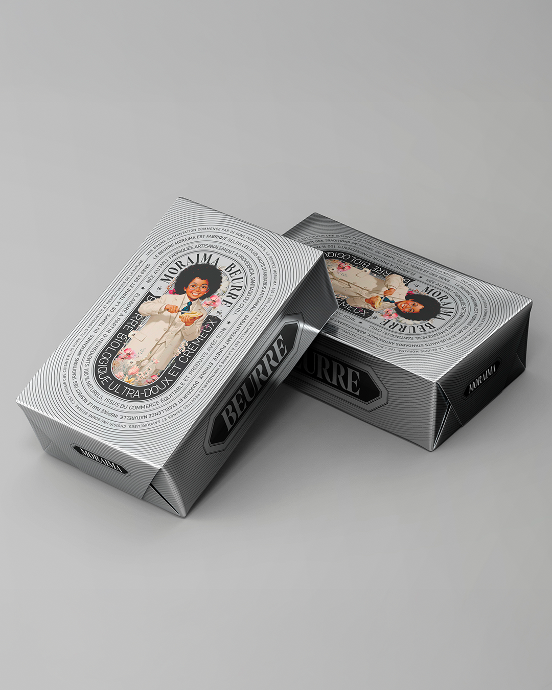 I imagined a butter brand born in Mali and refined in Chile: elegant, metallic, and artisanal.
