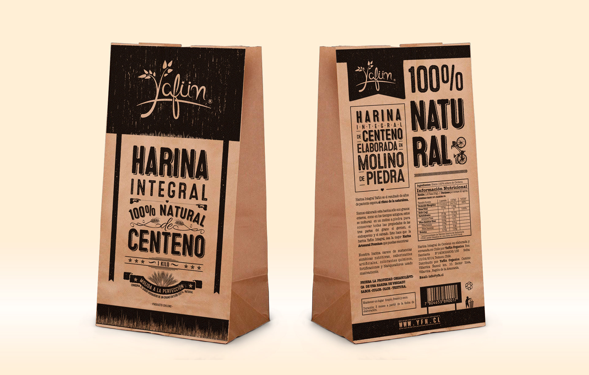 Hence, Organic Flour of Yafu?n takes inspiration from the graphic design styles of the 1900s. It was essential for the design to employ a monochromatic palette, not only for ink conservation but also to facilitate in-house production of printed packaging right at the farm where the flour is made.