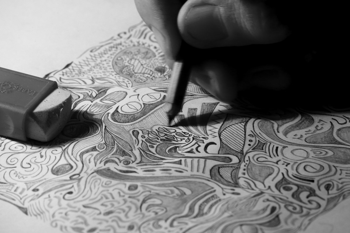 The illustrations consist of abstract shapes inspired by the type of doodles people create when their minds wander while engaged in other tasks. This phenomenon is often referred to as 'unconscious language' in psychology. It's those creative moments, or perhaps during a routine meeting when a cup of coffee sits on the table and your mind drifts into deep thoughts. It's in those very moments that this milk will elevate your coffee experience.