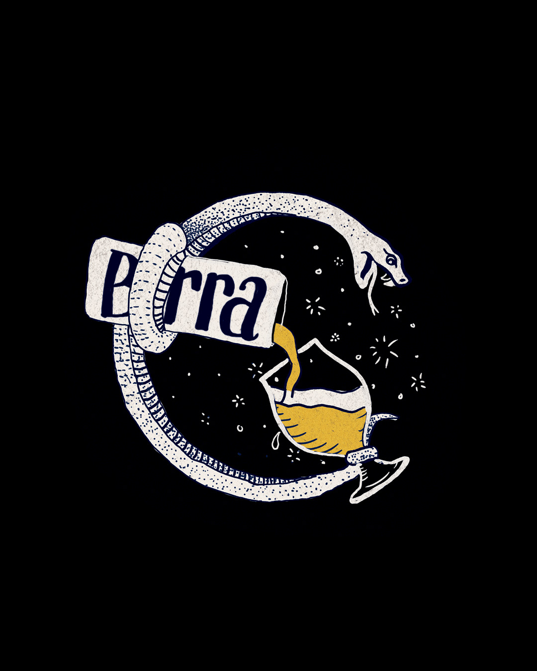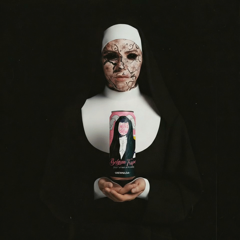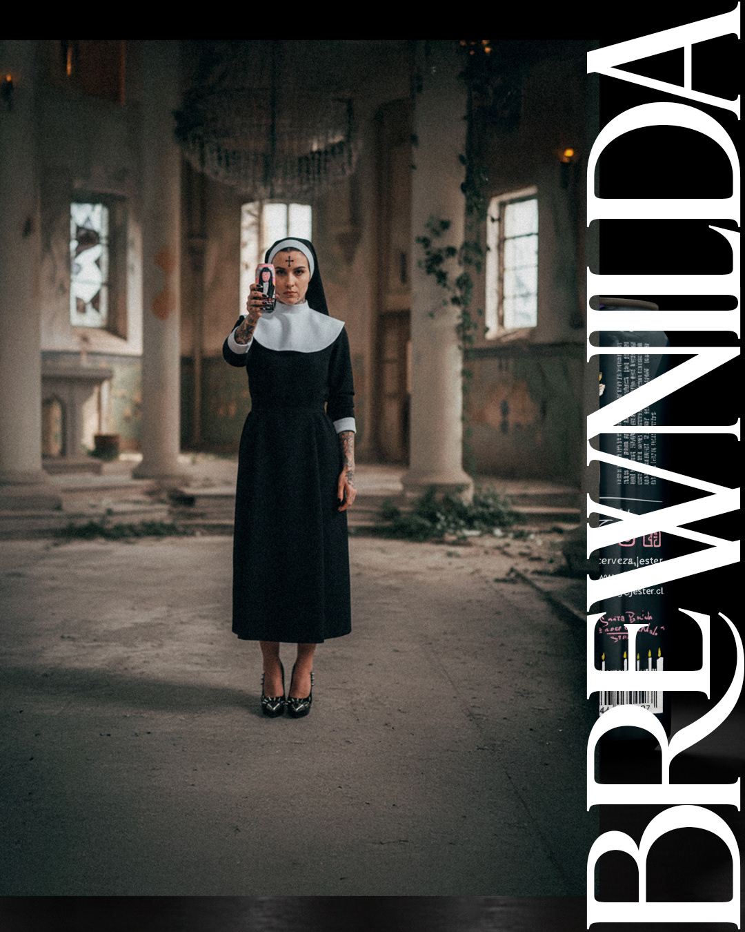 Packaging design for a Belgian beer named "Santa Brigida," which translates to "Santa Violenta" in Spanish, alluding to its robust alcohol content of 10 degrees, a characteristic of typical Belgian beers. The design is entirely handcrafted.